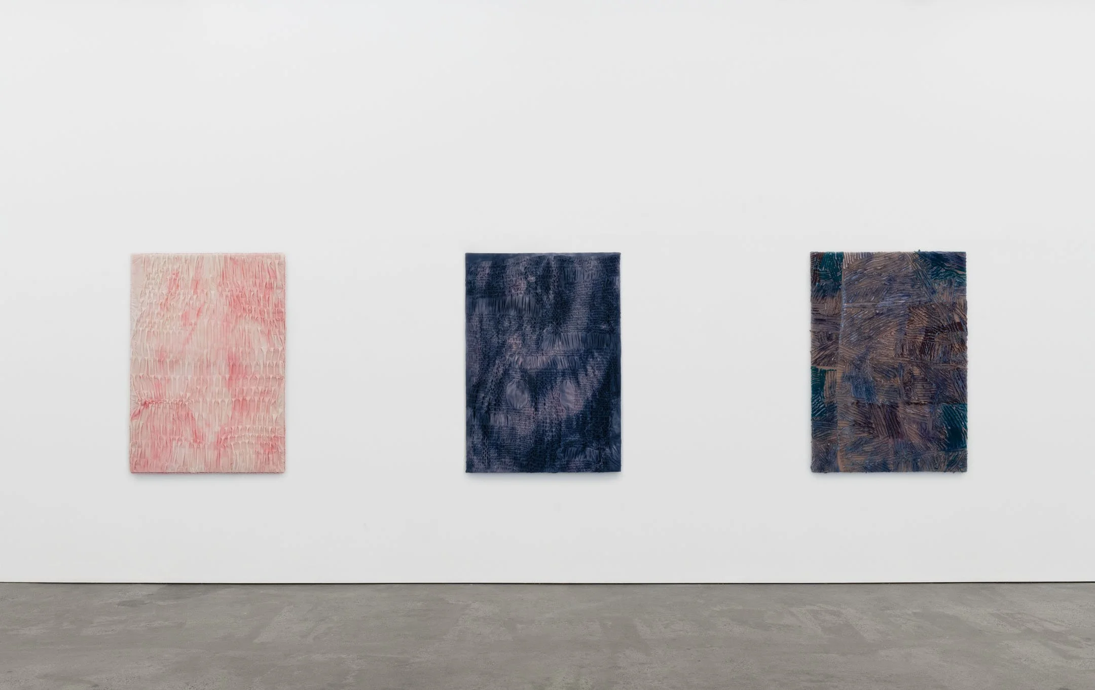 Dreaming/Mapping, 2023, 137x96.6cm, Bed sheets, Pillowcases, fabric dye and thread. Sold